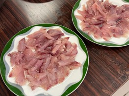 親子でフクラギをさばいてお刺身に調理
